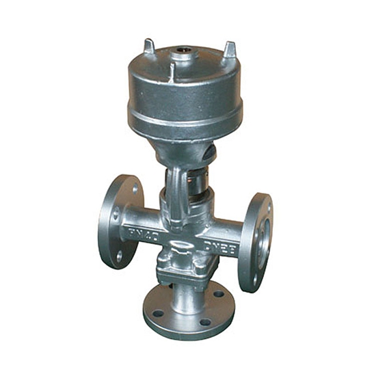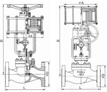 當信號壓力為零,由于彈簧(單作用僅有)的預緊力,使閥芯處于初始狀態(常開或常閉)。當執行機構接到信號壓力( 0.4~0.6MPa )時,壓縮彈簧,帶動推桿、閥體、閥芯移動到 限定位置,使閥門全開或全關。達到對管道內介質接通、切斷或管路間切換控制。