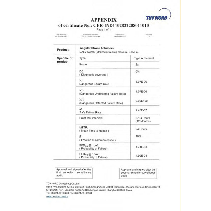 角行程執(zhí)行器 SIL證書 2