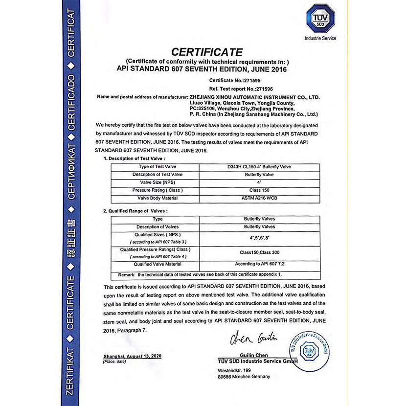 蝶閥防火證書 2