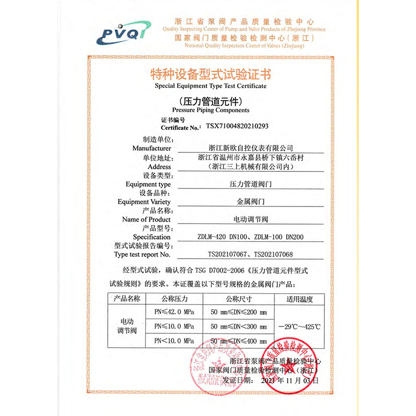 電動調(diào)節(jié)閥 型式試驗(yàn)報告